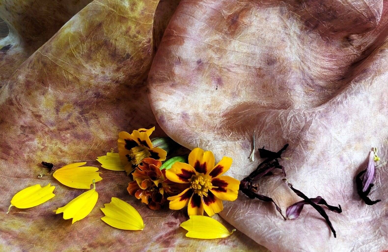 Each participant will select from the plant matter provided which they will arrange on a silk scarf ( included in the price ). Once rolled up and secured, this will then be steamed.